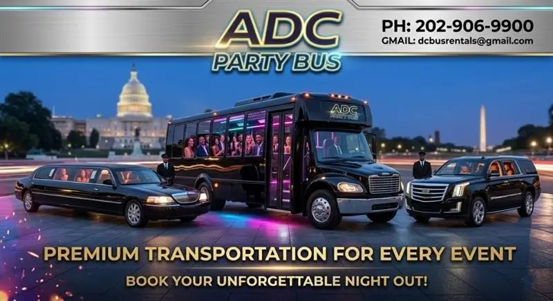 With ADC Party Bus, you do not have to worry about transportation details while planning a group event. The site also emphasizes easy booking, professional drivers, and a variety of vehicle options.